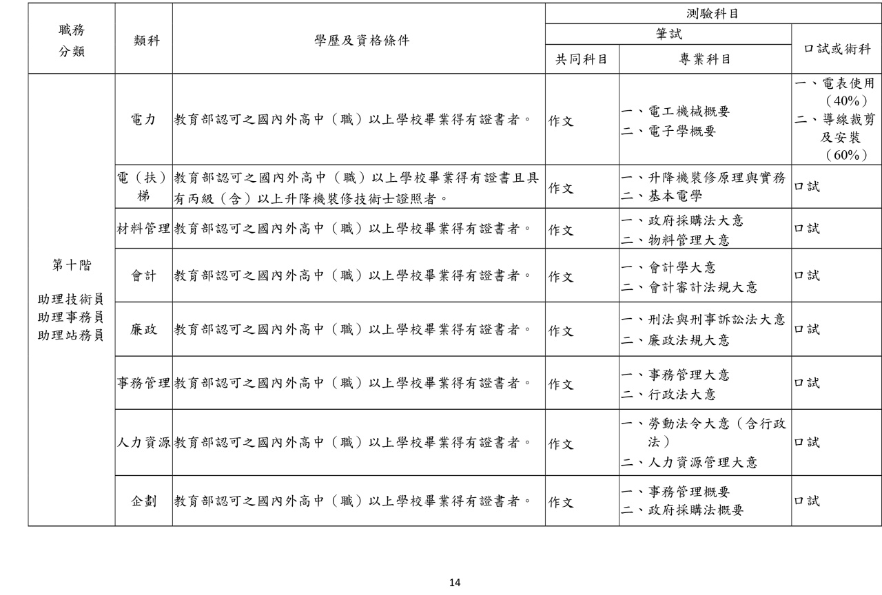 ◆【主題(之四)】:【(台鐵公司)招考】~【考試科目、招考類別】: