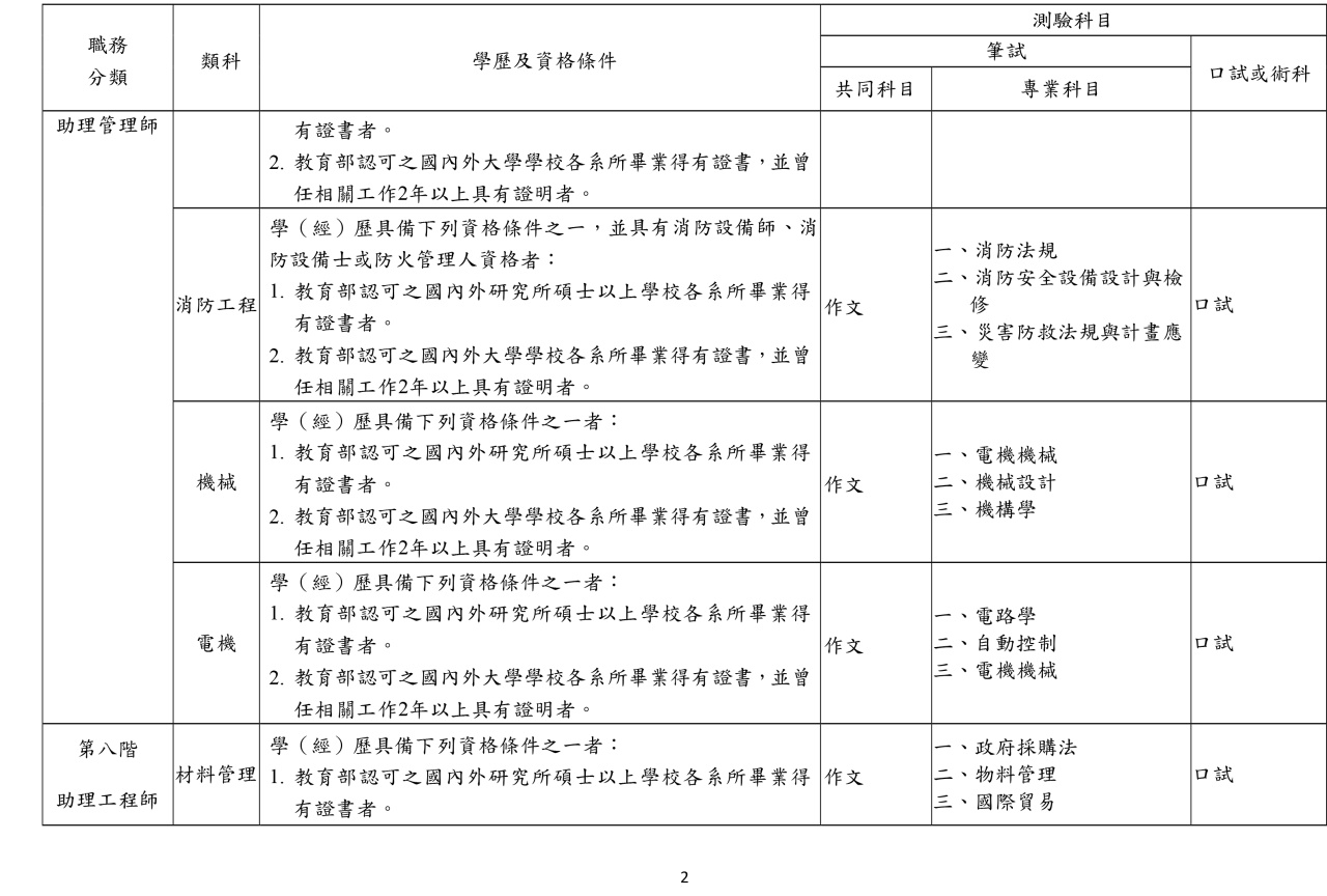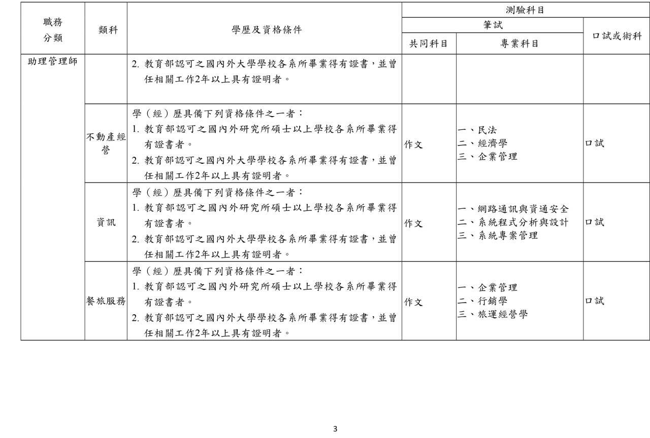 第 8 階助理管理師:正取 4 名、備取 12 名,月薪約 45,130 元(支 35 級 270 薪點)。