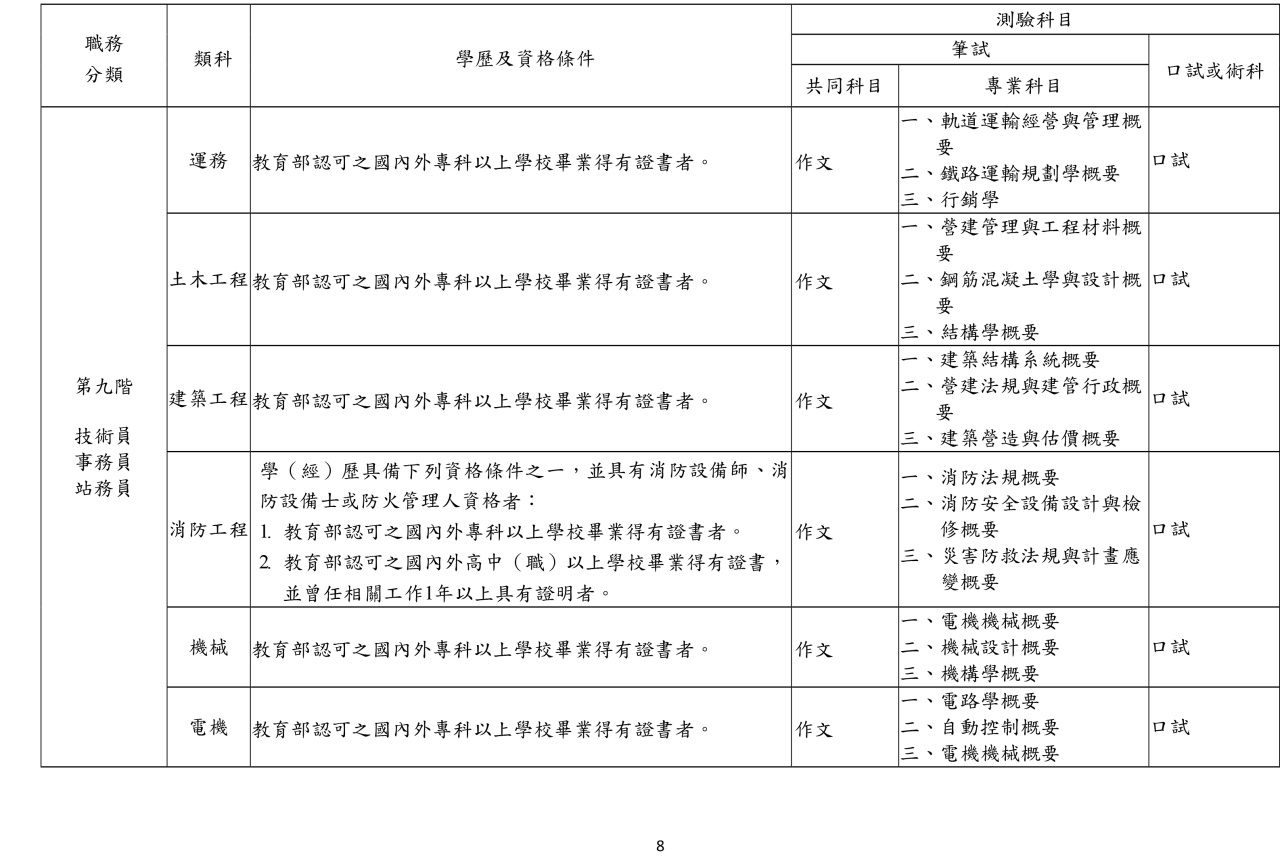 ( 3 ).【台鐵 (第八階、第九階)】招考類別: