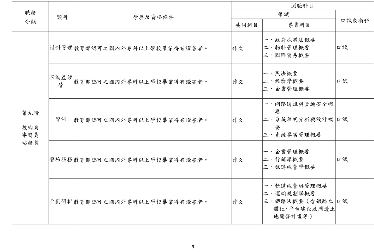 ( 3 ).【台鐵 (第 9 階)】:[共同科目(考 1 科)]+[專業科目(考 3 科)]→ 共考[4 科]!