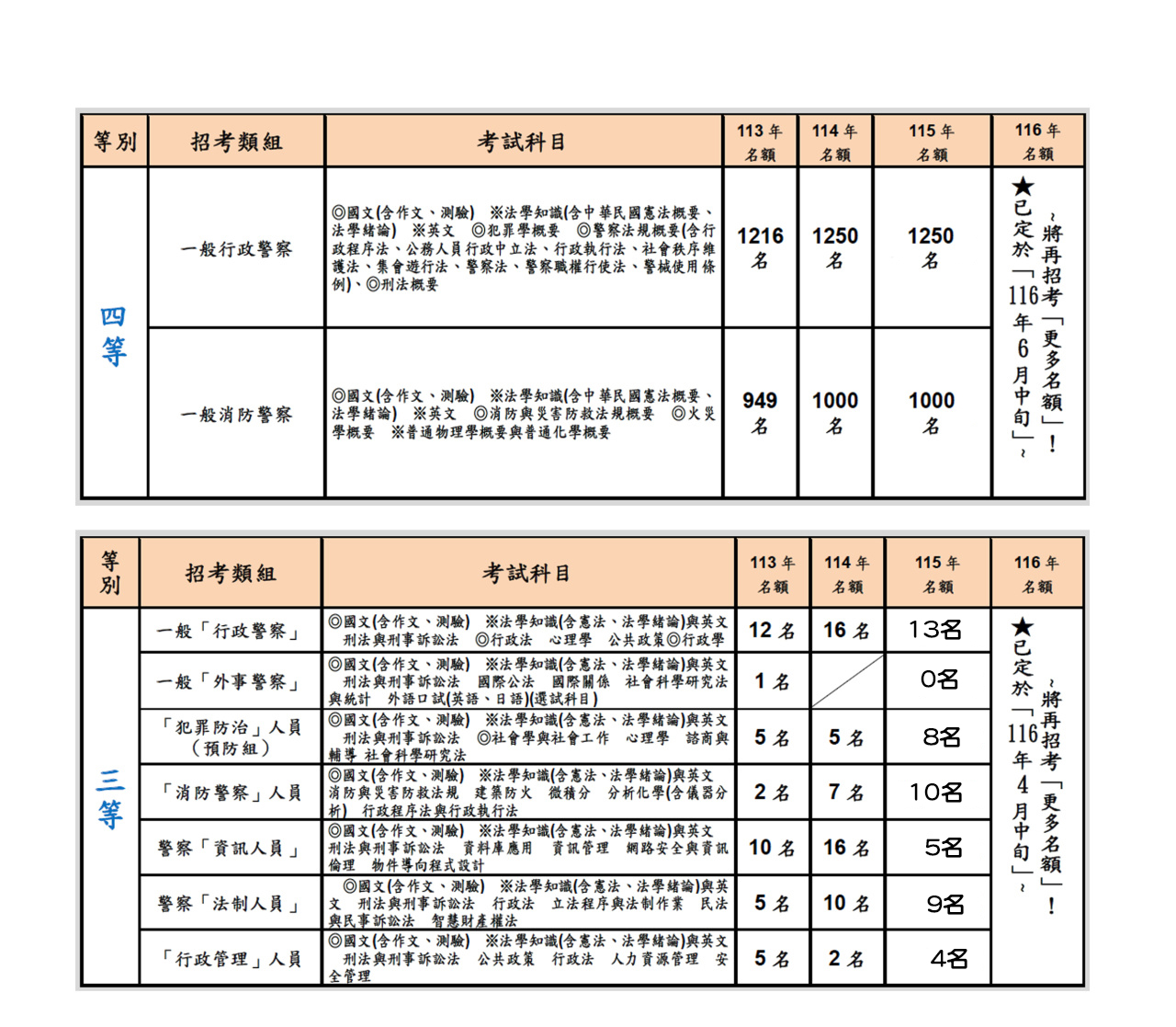(5).【115 年 6 月 13~14 日】→「一般警察(三等‧四等)特考」→ 將再招考「2402 名」以上!