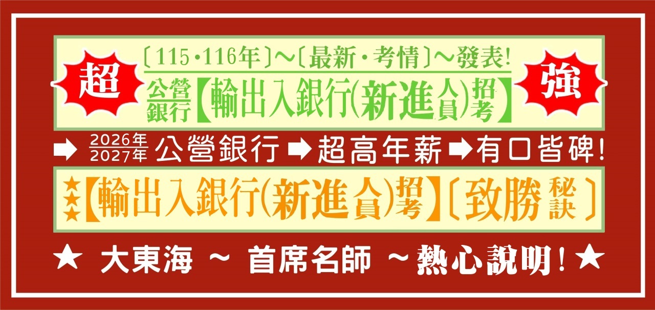 【一】、【考試科目】:【(輸出入銀行)招考】→【第一階段(筆試)】+【第二階段面試】!