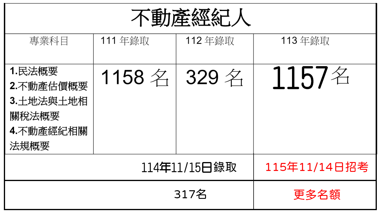( 5 ).【115 年】→【(不動產經紀人考試)】→將再招考【更多名額】!
