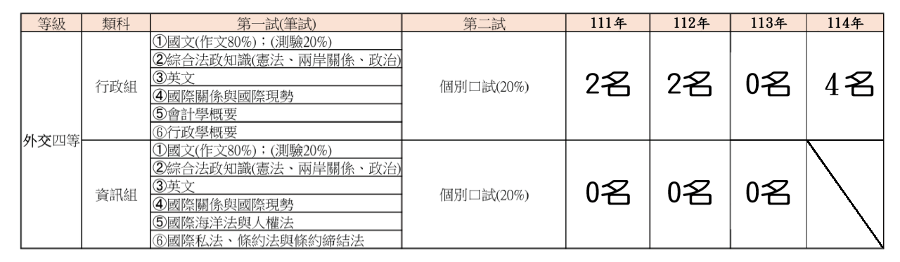 (2)【外交(四等)特考】錄取: