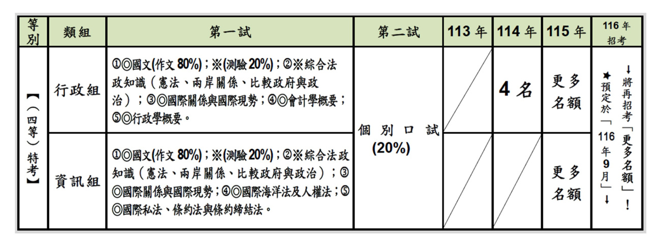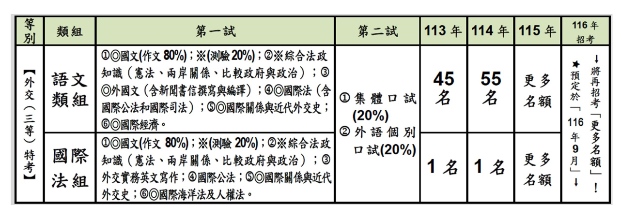 (6)【115 年 9 月 5 日】→「(外交)特考」→將再招考「更多名額」!