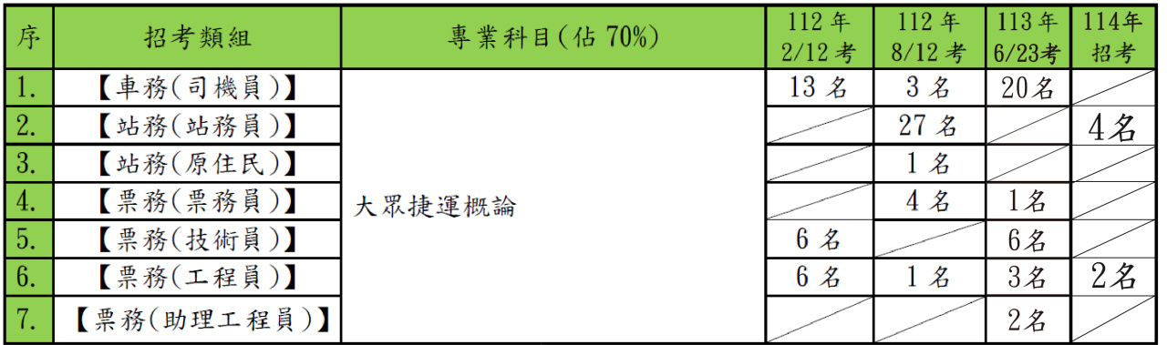 3.113 年度→「113 年 6 月 23 日」考試→「桃園捷運(新進人員)招考」→共計錄取「78 名」!