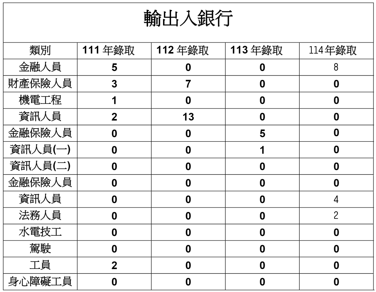 (一)111 年度→「111 年 8 月 13 日」考試→「輸出入銀行(新進工員)」→共計錄取→「 39 名」!